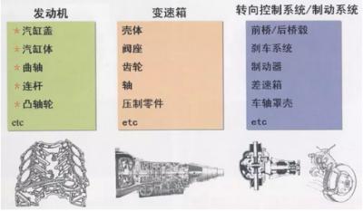 而這其中,又以圖中*號部分如汽缸蓋、汽缸體、曲軸等零件形位復(fù)雜,加工難度最大。本次我們從汽缸蓋開始,分享它們的主要加工面和加工方法。
