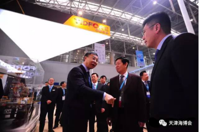 中國海洋工程咨詢協會會長周茂平(左二)到2017天津海博會現場參觀調研