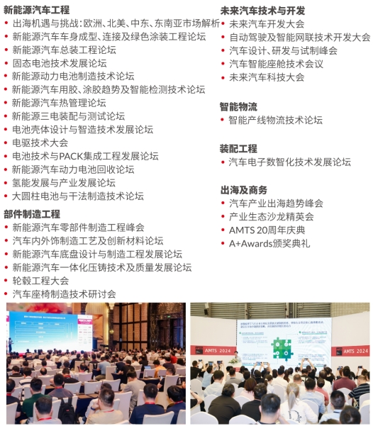 AMTS 2025同期活動致力于促進汽車制造業系統集成及智能制造等創新理念的應用,專注乘用車動力總成、新能源汽車工程、車身工程、核心汽車零部件制造及未來汽車開發等領域的技術交流與商務對接。參會者可以實時把握行業趨勢,獲取汽車行業前沿技術應用與解決方案。