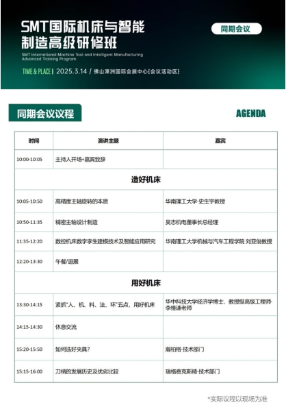 好機床的標準是什么?造好機床背后的邏輯又是什么?如何突破層層技術瓶頸?佛山國際機床展同期論壇將為您一一揭曉。入手一臺好機床無疑是企業提質增效的基石,但企業擁有一臺好機床就萬事大吉了嗎?人、機、料、法、環各個環節有何講究、如何搭配才能實現最優解?SMT國際機床與智能制造高級研修班將奉上通關秘籍。