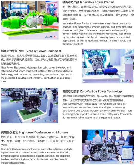 第二十四屆中國國際內燃機及動力裝備博覽會于2025年11月12日-14日在江蘇南京國際博覽中心舉辦,展會以“動力驅動世界”為主題,涵蓋新燃料內燃機、動力總成、燃料電池、動力電池、零部件、再制造及售后市場、小型通用動力設備、智能制造產業的新產品、新技術,將鏈接商用車、乘用車、工程機械、農業機械、飛行器、船舶、發電機組、園林機械及娛樂機械等多個應用領域,是集推廣產品、交流技術、傳播品牌于一體的重要綜合性平臺。通過這個平臺,全球的動力裝備制造商、供應商、研發機構和用戶可以共同探索和推動行業的創新和可持續發展。