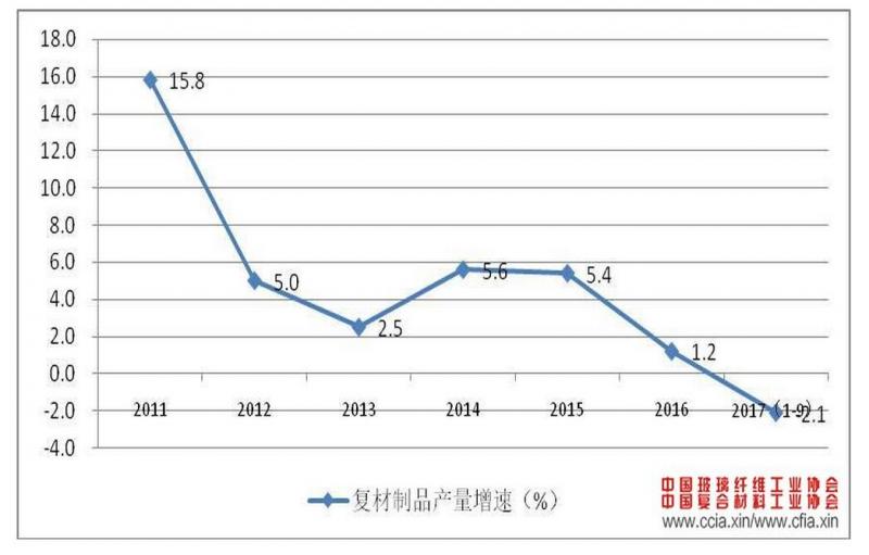 隨著霧霾等影響民生的環保問題日益突出,國家環保部門終于在 2017 年掀起了史無前例的環保督察風暴,一大批審批手續不規范、環保設施不健全、三廢排放不達標的企業被強制關停。對于復合材料行業而言,多年來對于環保問題沒有足夠重視,尤其是對廢氣、廢水等問題很少關注。因此隨著環保督察風暴的來襲,一大批企業被迫臨時停工停產,對企業的生產和經營造成不小影響。1-9 月份,規模以上復合材料制品企業產量與去年同期相比,下降 2.1%。