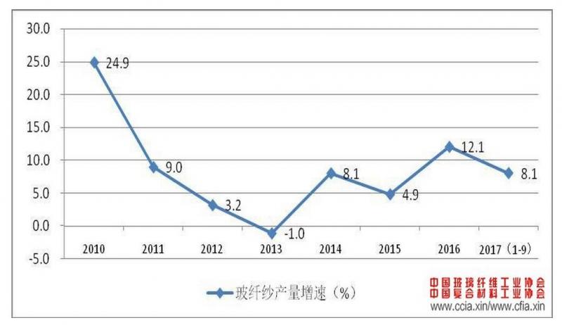 圖 1 玻璃纖維行業近年來產量增速變化情況
