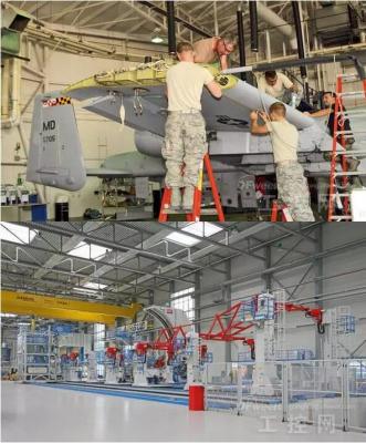 國內的飛機裝配,雖然在局部上也采用了較為先進的技術,如采用CAD技術進行了包括建立型架標準件庫和優化型架及參數設計,對工裝、工具和產品的裝配過程進行了三維仿真等,開始采用激光測量+數控驅動的定位方式,部分機型還采用了自動鉆鉚技術等,但總體上與發達國家相比還存在較大差距。