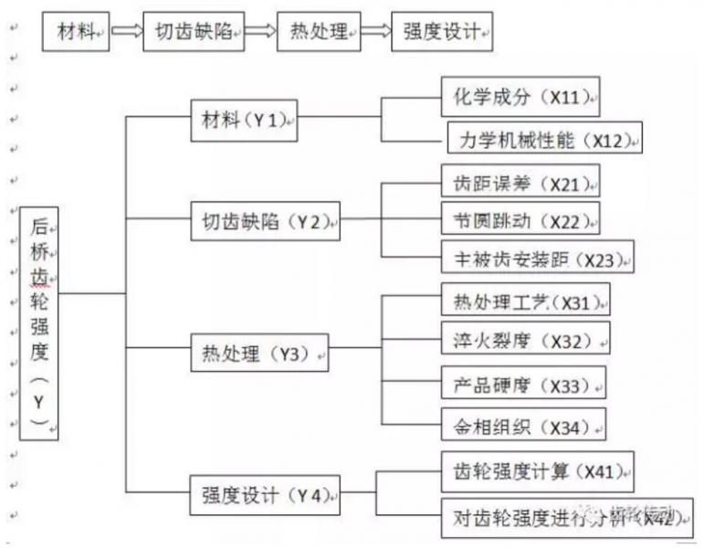 對于齒輪失效的質量問題,要從根本原因上去查找。首先對問題進行“項目界定”,之后再對界定的項目進行“項目測量”,查找出問題之后再從失效機理開始分析對產品的功能分析之后進行“設計優化”,整個分析完成之后要對設計優化后的產品進行“設計驗證”,如果可行,還要對改進后的產品進行“風險分析”。