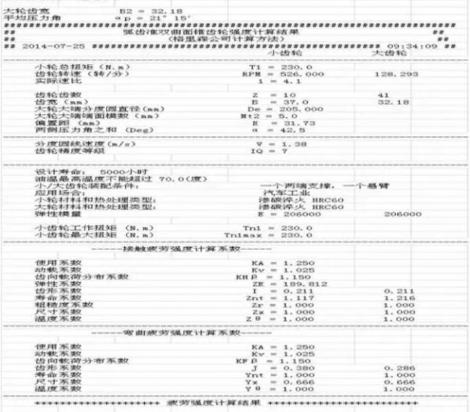 根據驅動橋齒輪設計的相關要求,驅動橋后橋齒輪承受的強度須小于該材料的許用強度,且安全系數>1.0,由被動齒輪安全系數的計算公式