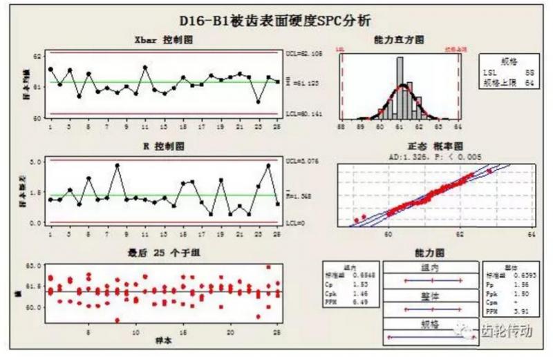 為了保證本批被齒安裝的一致性,用SPC《質量工具》來分析安裝距的過程能力: