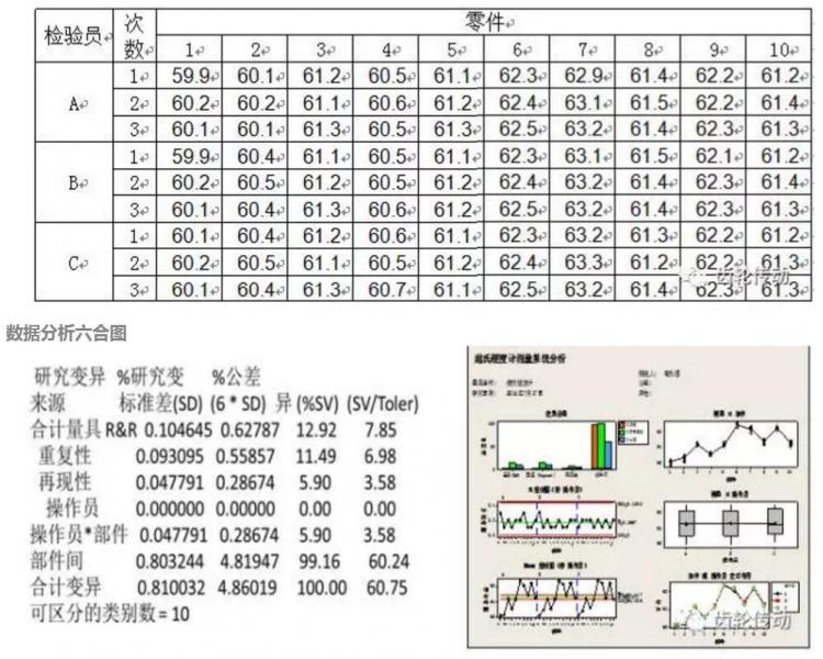 由以上數據可以看出:該測量系統可區分的類別數=10,說明該測量系統的分辨率ndc=10>5。說明該測量系統分辨能力充分滿足要求。