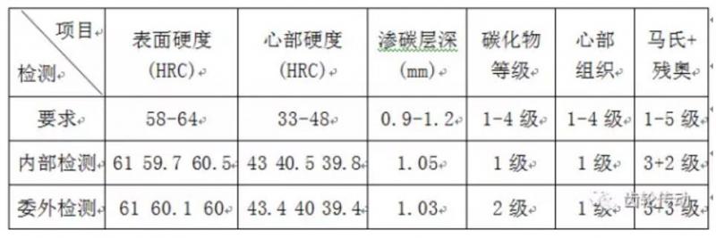 由以上檢測結果表明:各項檢測結果均在技術要求范圍內,說明該齒輪的熱處理質量沒有問題。