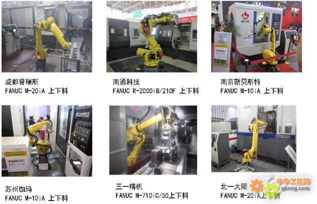 2012CCMT機床展上,南通科技、三一精機、揚力集團、北一大隈、上海機床廠、南京帕萊克機械、成都普瑞斯、南京新貝斯特、蘇州珈瑪、紐威數控、深圳捷甬達、山東永華分別采用“地裝式FANUC機器人搬運”,即島式加工單元,展示了“機床上下料”的應用。